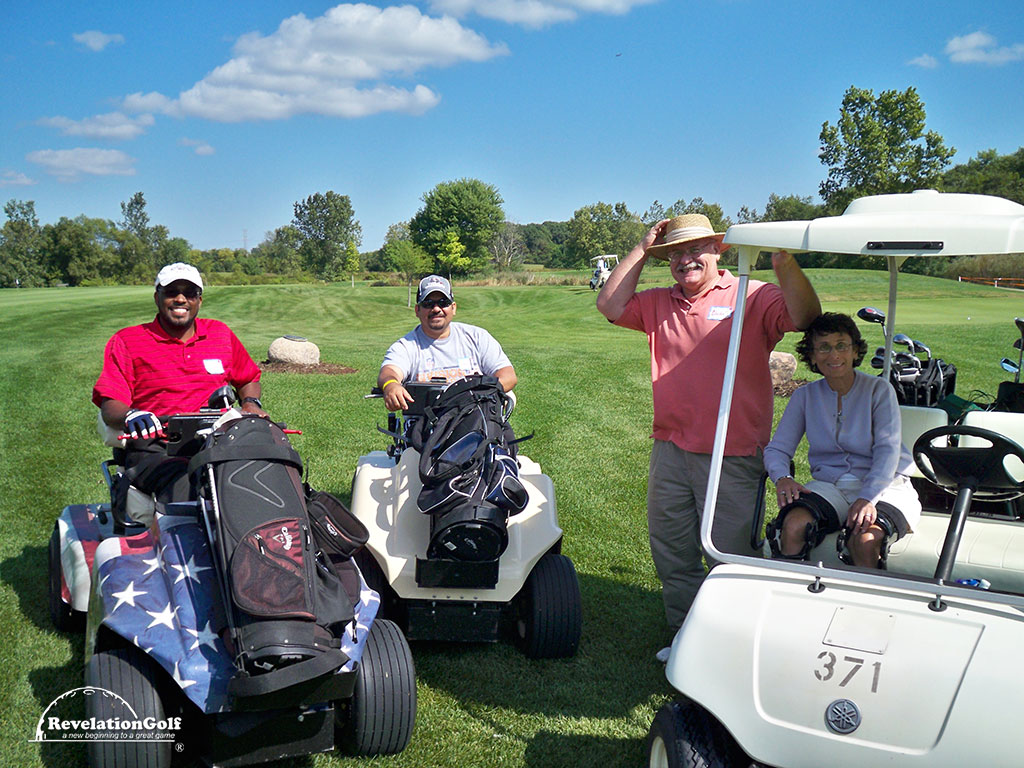 Whether you are a first time golfer or a seasoned player, our program is tailored to your ability and specific need. Our instructional clinics take place weekly and last from 1.5 to 2.0 hours. During the clinic, each golfer is given personal attention and instruction on ways to play and advance their individual game. RevelationGolf also provides the adaptive and modified golf equipment needed to play the game. These clinics are designed to help adults with cancer, stroke survivors, amputees, wheelchair users, the blind, those with joint replacements, multiple sclerosis, Parkinson's disease and other physical disabilities. Clinics are held at golf courses and ranges and are led by LPGA/PGA golf professionals and clinicians who have been trained by RevelationGolf. Each participant must have a medical release form signed by their physician before participating. If you are interested in participating in this program, please call 630-253-7703 for more information on a clinic in your area.