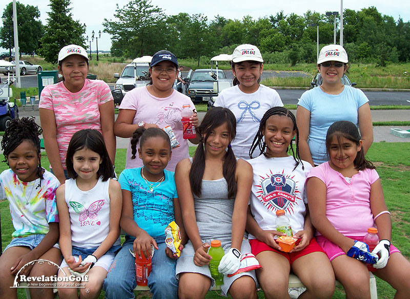 RevelationGolf works with various community agencies to provide this unique program for girls age 7 to 17. This program is designed to help increase a girl's self-esteem, self confidence, dignity and respect, while learning the game of golf. Through demonstrating the many parallels between golf and life, our girls learn honesty, good stewardship, and integrity on and off the golf course. This program is led by female instructors and is held at golf courses and ranges throughout the Chicagoland area. Each participant must have a medical release form signed by their physician before participating. If you are interested in joining this program, please call 630-253-7703 for more information on a clinic in your area.
